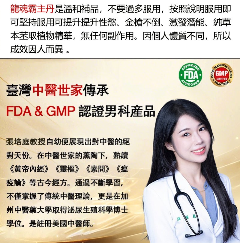 龍魂霸主丹由大洋彼岸的美國進口,100%的中藥材提取,由人参、自肉蓯蓉、巴戟天、鎖陽和腎精草、天山雪蓮等草藥純天然萃取合成,結合現代化先進製藥技術,無添加劑,無任何西藥成分,無任何副作用,安全有效,品質保障。權威正品,無效退款。